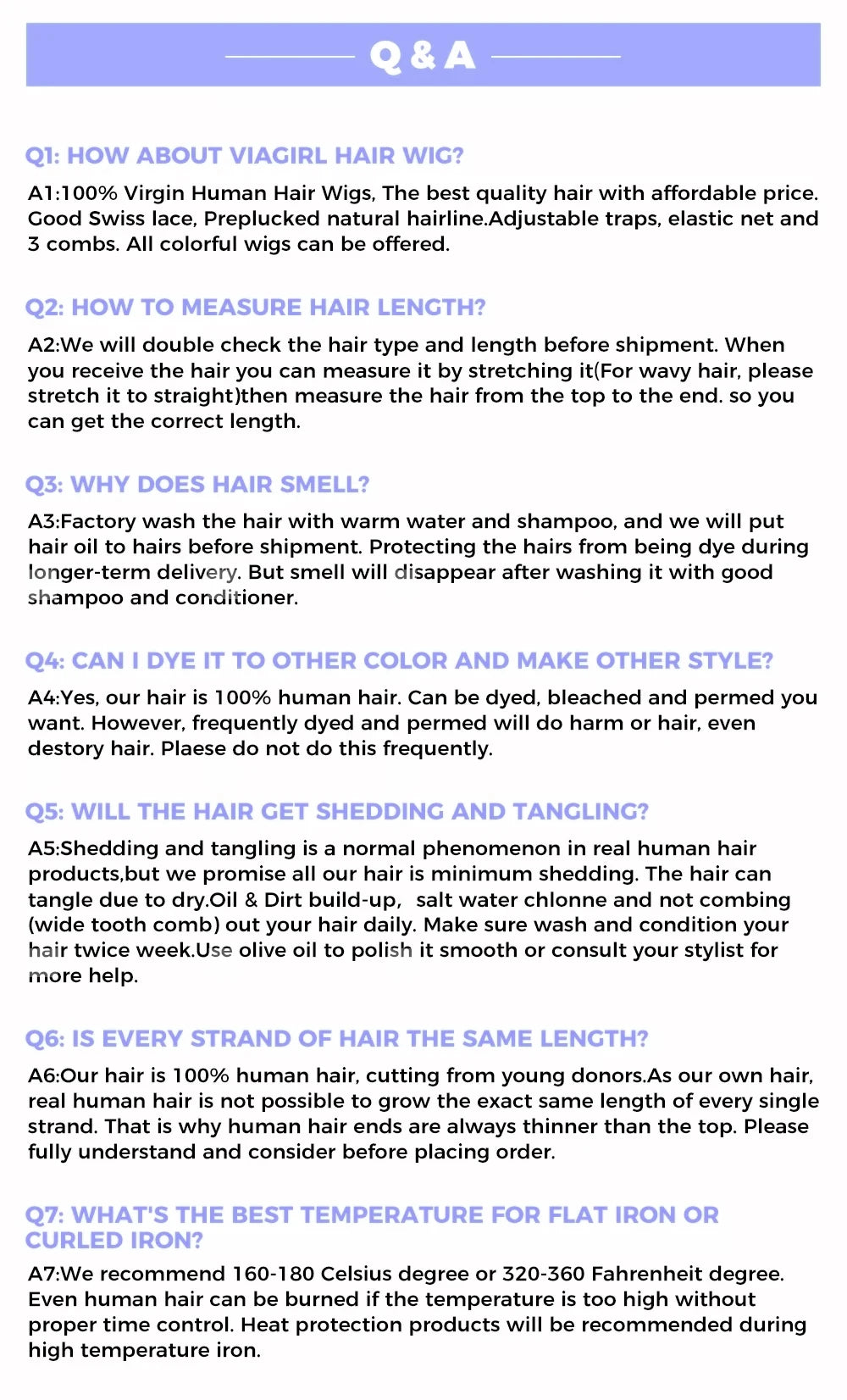 • Hair grade: Remy Hair