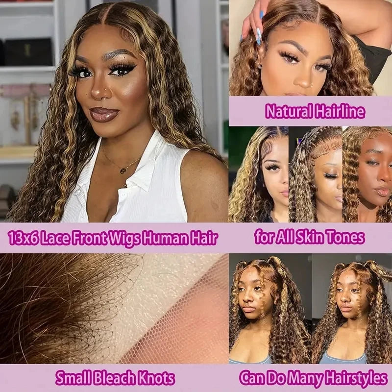 30" Water Wave 4/27 Highlight Ombre 13x6 HD Lace Front Wig (250% Density)
