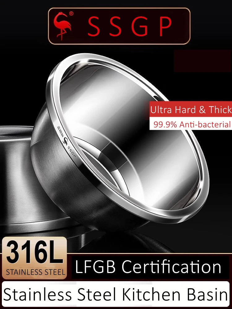 🥗 316L Stainless Steel Kitchen Bowl – LFGB Certified Anti-Bacterial Basin
