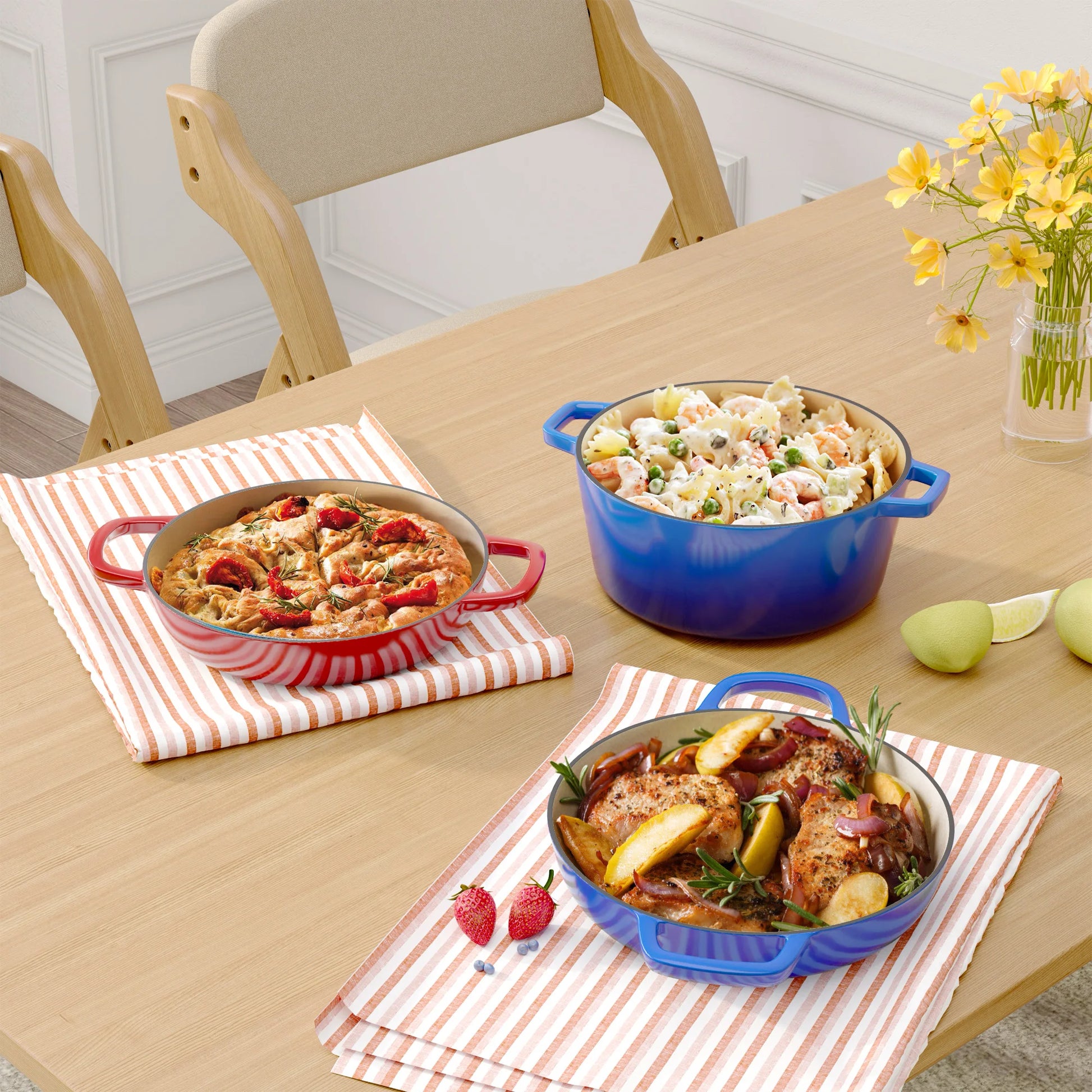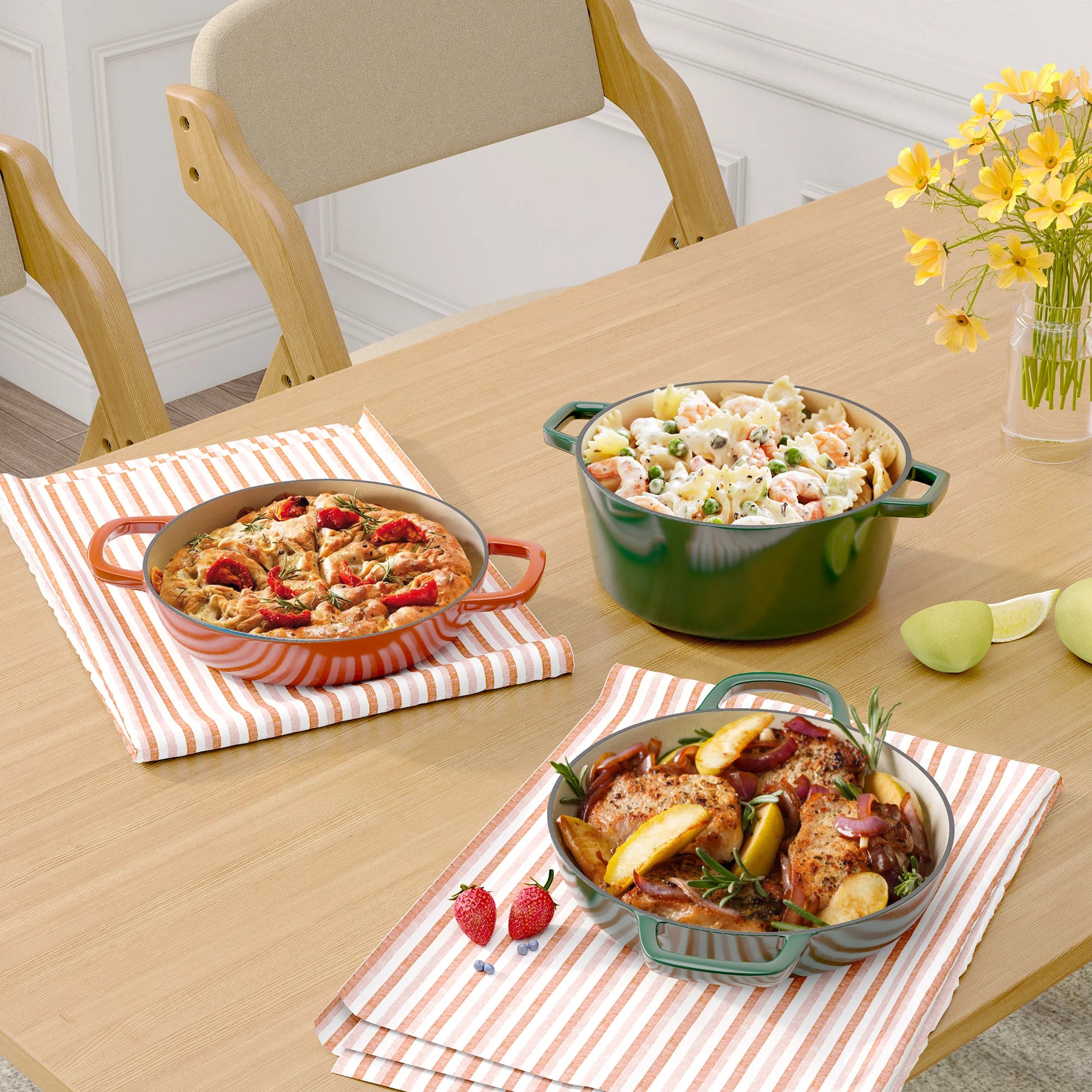 - Premium Enamel Coating – Prevents sticking, resists staining, and makes cleaning effortless.