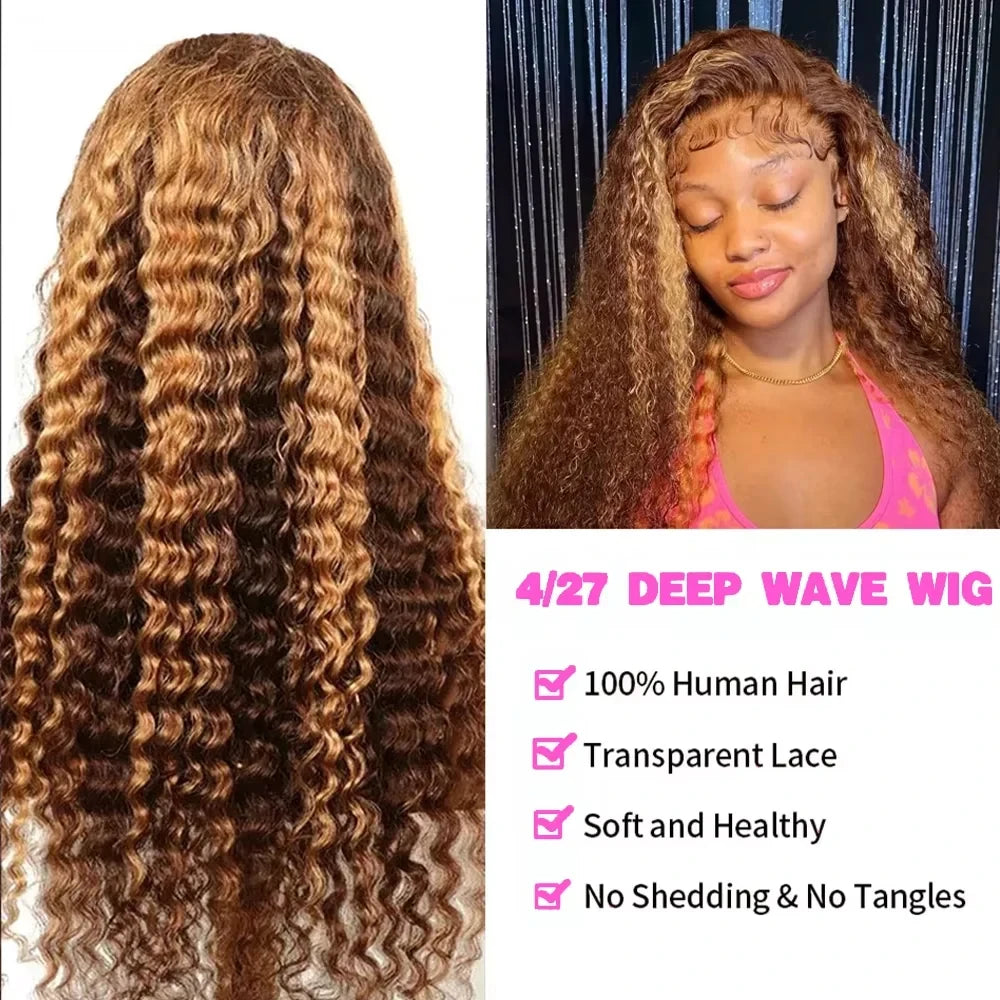 4/27 Honey Blonde Ombre Curly Human Hair Wig (38 Inch, 13x6 HD Lace Front / 13x4 Deep Wave)