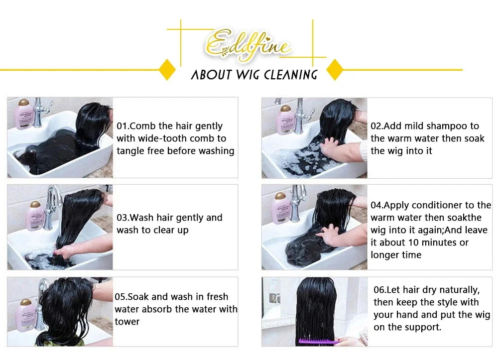 - Air dry on a wig stand to keep the shape and length
