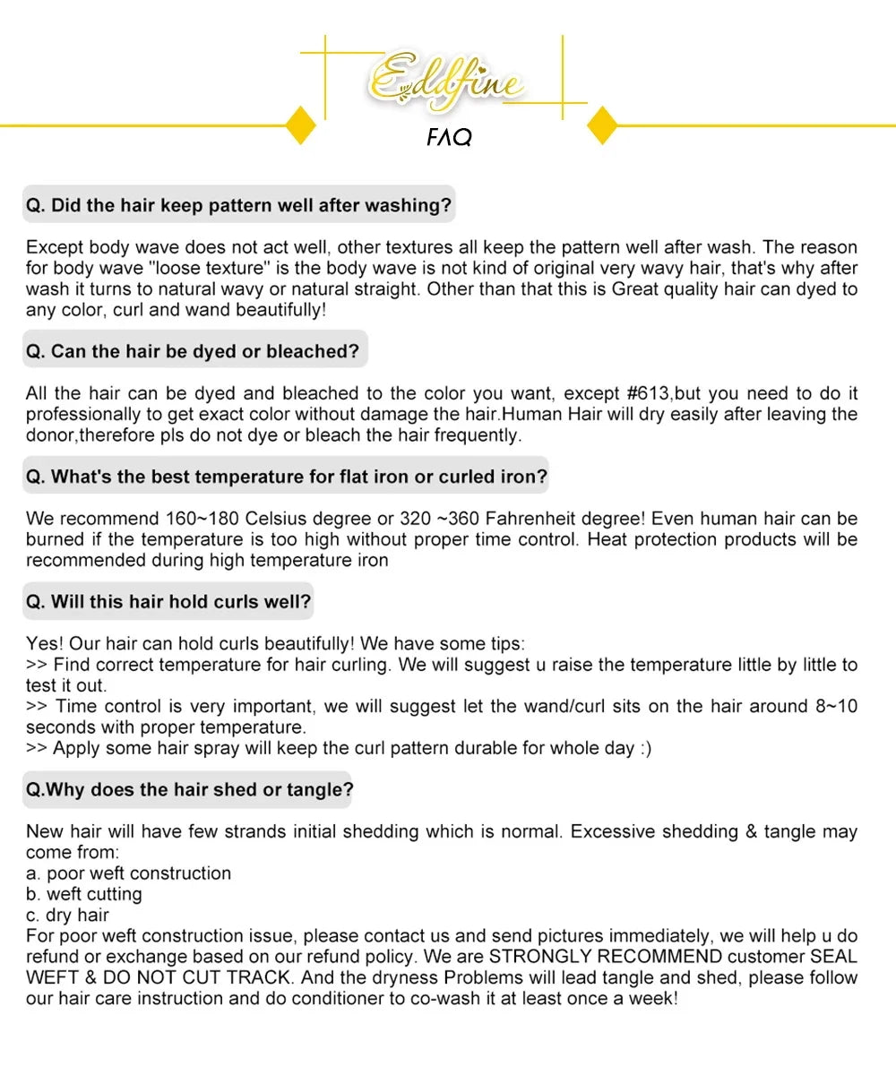 - Hair Grade: Remy Hair – cuticles aligned, less shedding & tangling