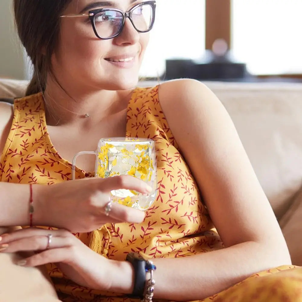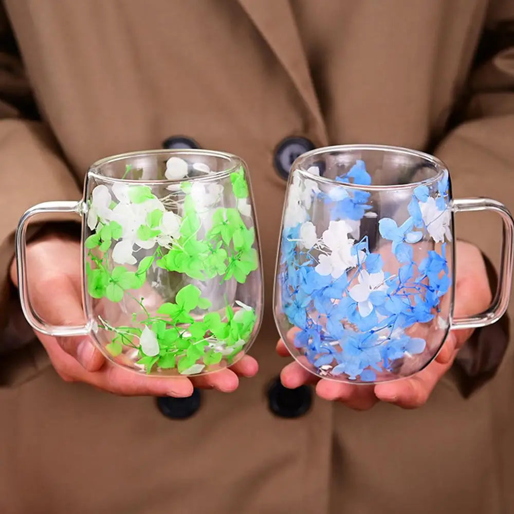 πΈ Double Wall Glass Cup 200ml β Clear Dried Flower Coffee & Tea Mug with Handle