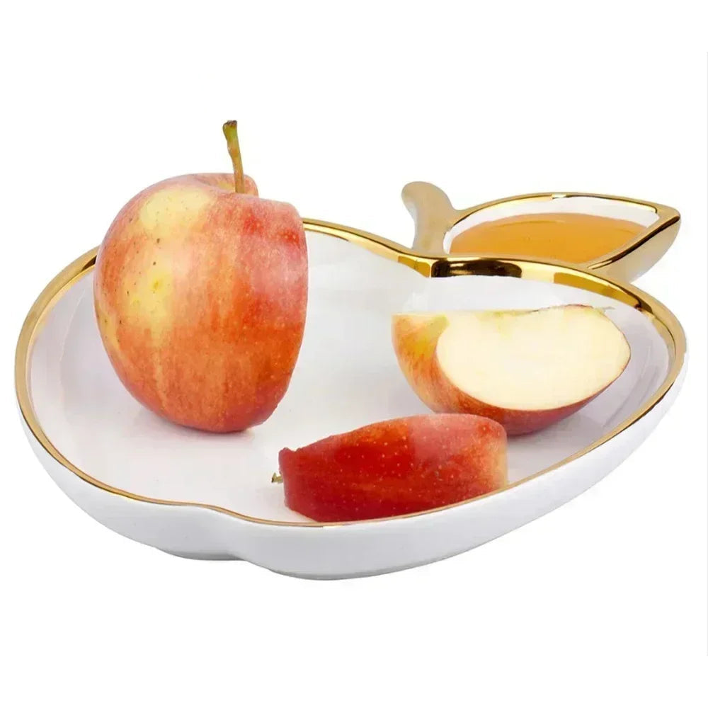 Jucaica Rosh Hashanah Apple Honey Dish – Ceramic Dessert Plate Set