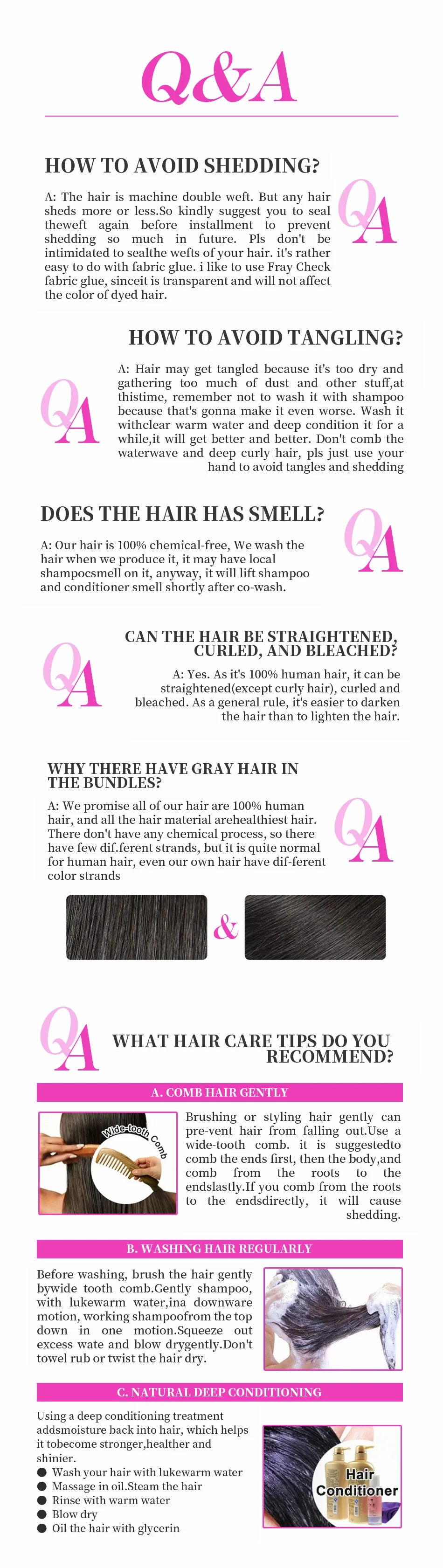 - Gently detangle the hair from ends to roots before and after each wear.