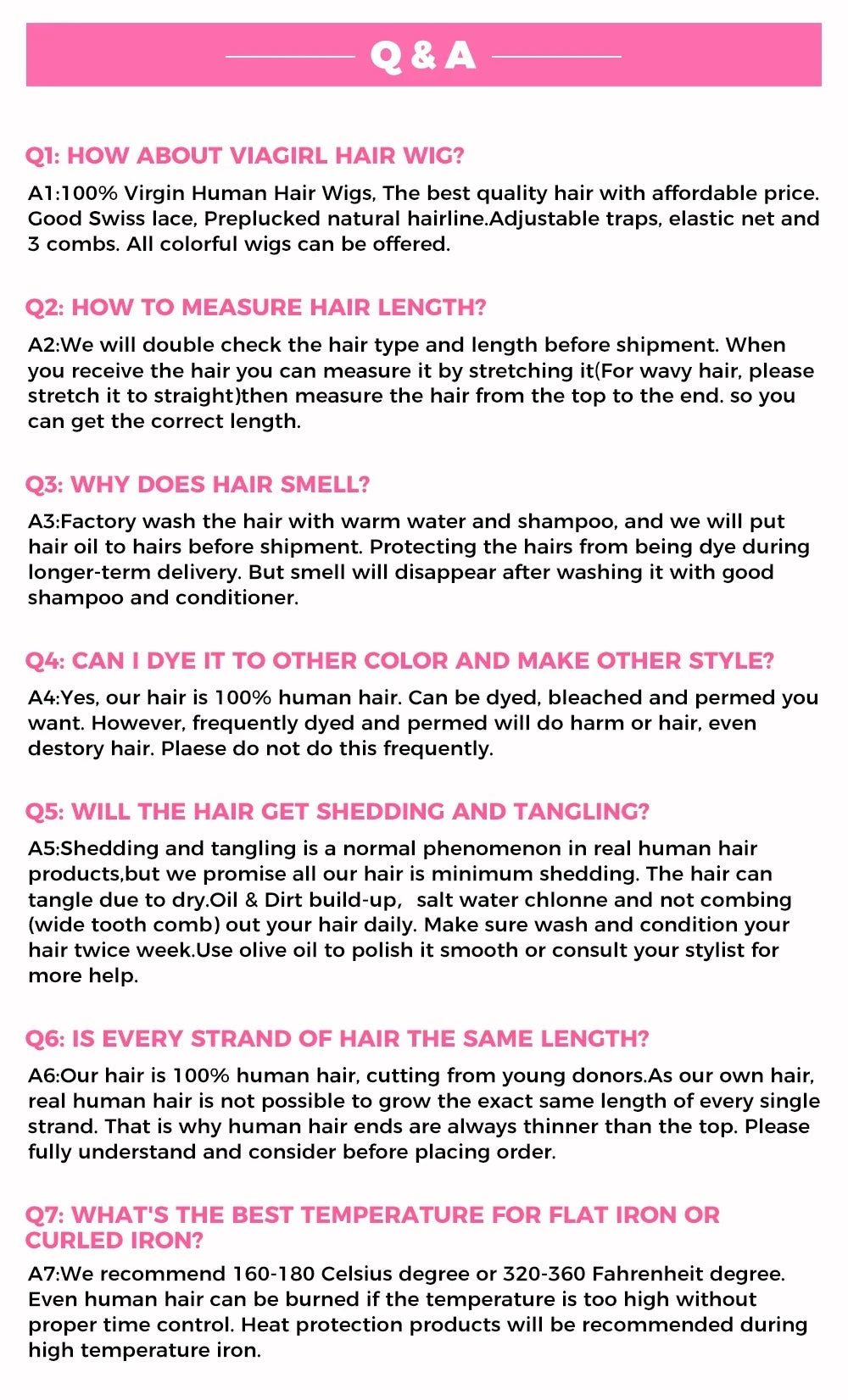 - Brazilian Remy Human Hair: smooth feel and long-lasting quality.