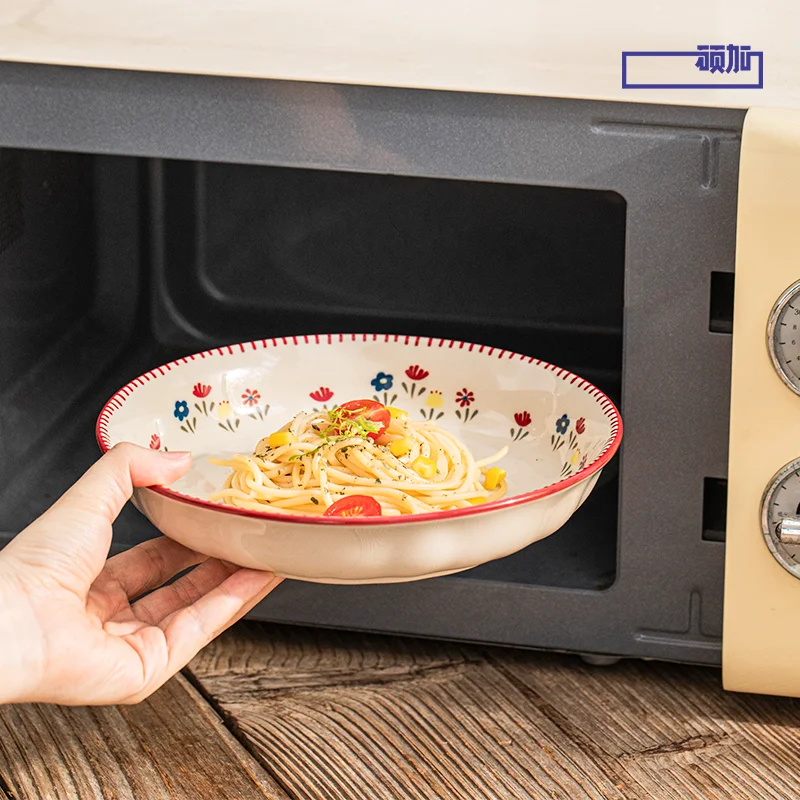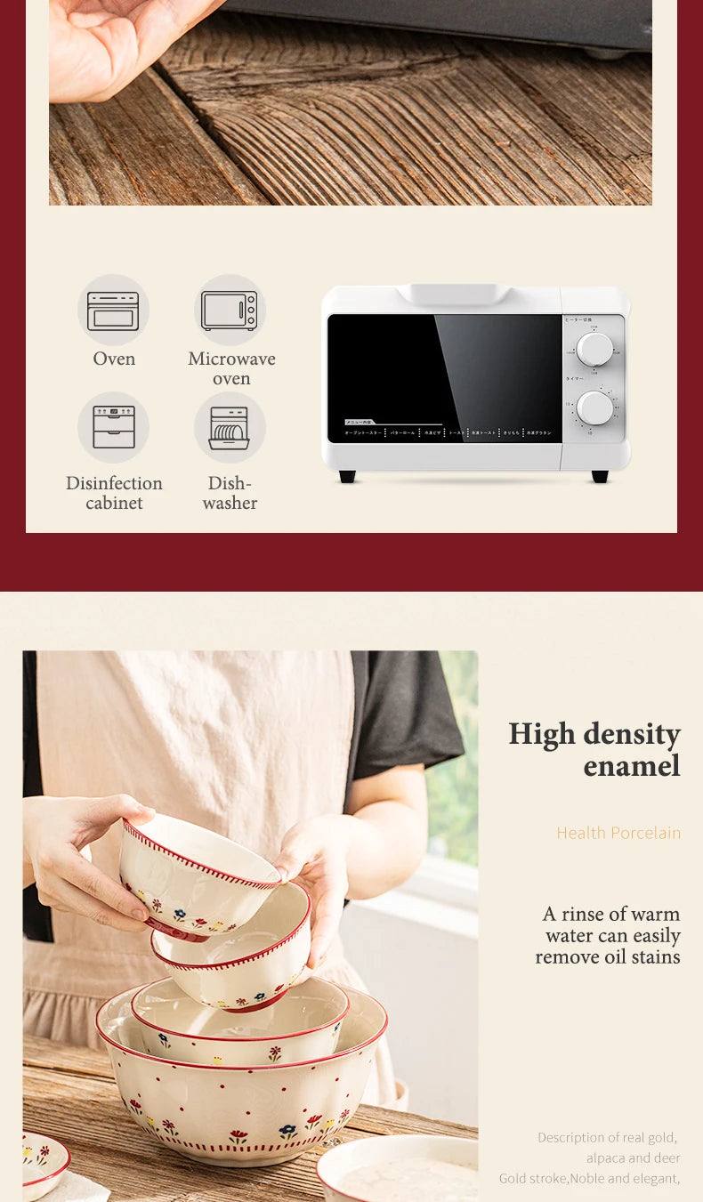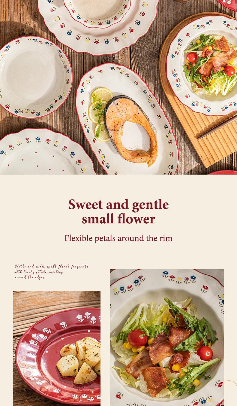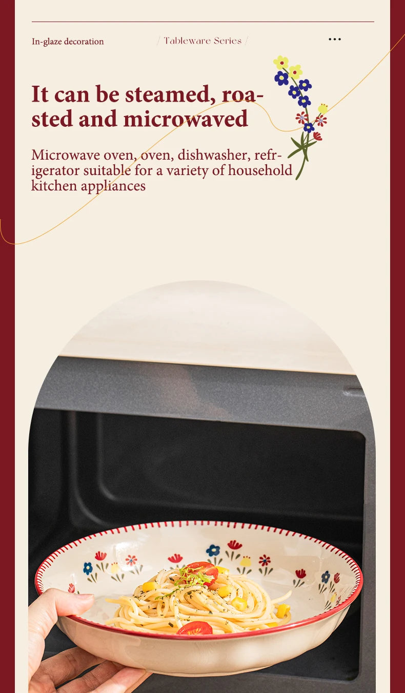 🍽️ Vintage Floral Ceramic Dinnerware Set – Retro Soup Bowls, Salad & Pasta Plates, Microwave Safe Porcelain Tableware